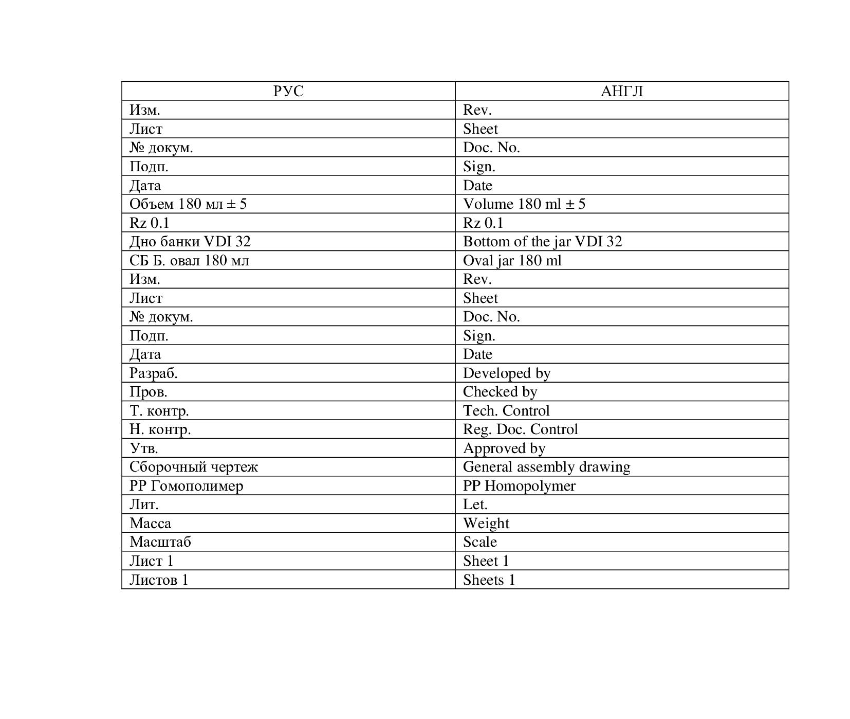 Пример перевода чертежа на английский в упрощенном оформлении