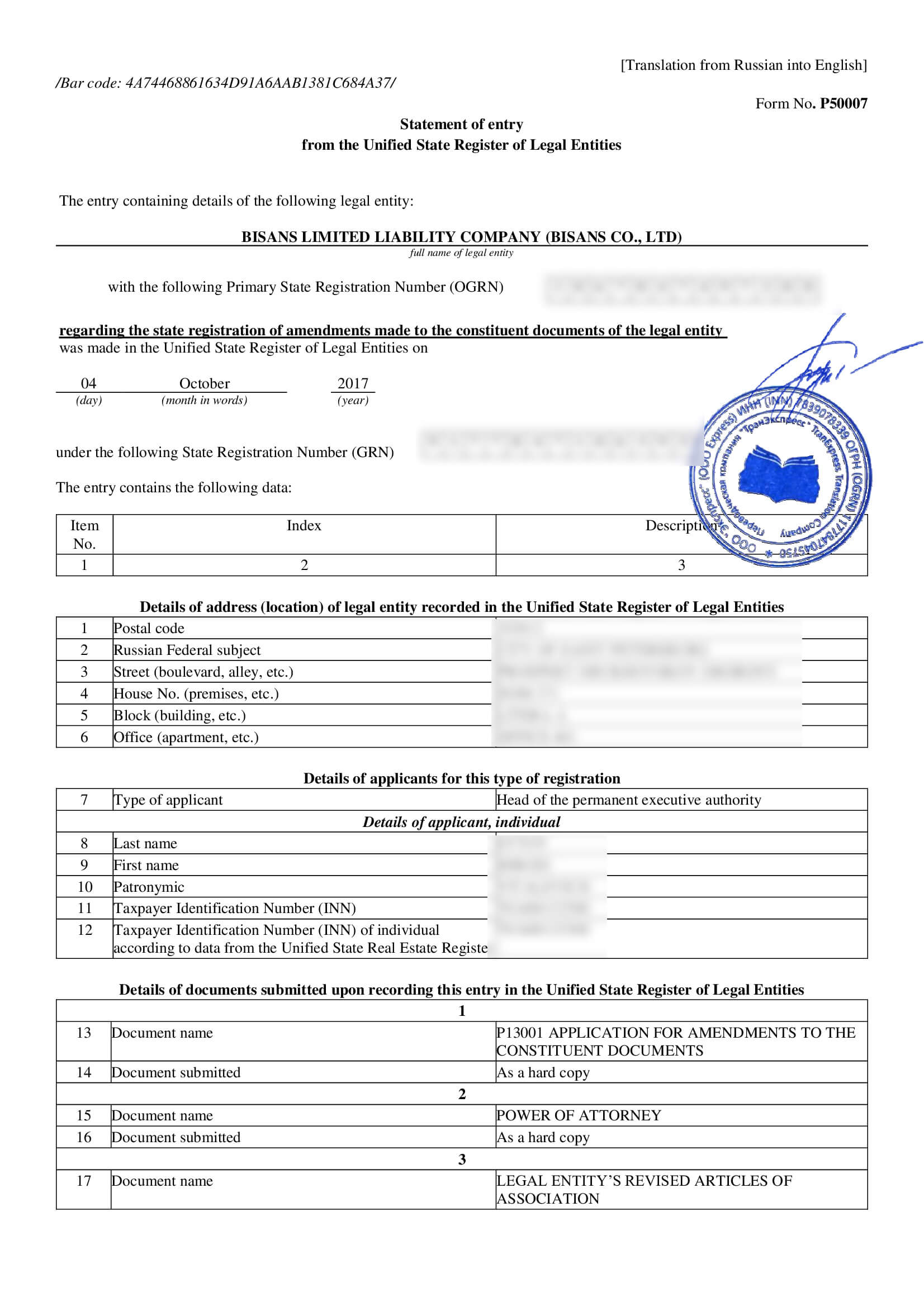- Отметим в документе расположение печатей и штампов и переведем их, также отметим расположение логотипов и других графических элементов.